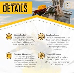 Choosing the right beekeeper suit is essential for ensuring your safety and comfort while working with bees. A good suit will protect you from stings, allow you to move freely, and keep you cool during long hours in the sun. When selecting a beekeeper suit, consider the following key specifications to find the best fit for your needs.MaterialThe material of a beekeeper suit is crucial as it determines the suit's durability, breathability, and level of protection. Common materials include cotton, polyester, and ventilated fabrics. Cotton suits are comfortable and breathable but may not offer the highest level of protection. Polyester suits are more durable and provide better protection but can be less breathable. Ventilated suits are designed with mesh panels to enhance airflow, making them ideal for hot climates. Choose a material based on your working environment and the level of protection you need.