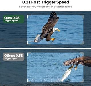 Trigger SpeedTrigger speed is the time it takes for the camera to take a photo after detecting motion. This is crucial for capturing fast-moving animals. A faster trigger speed (under 0.5 seconds) ensures you don't miss any action, which is important for monitoring elusive or quick animals. If your primary interest is in slower or more predictable wildlife, a trigger speed of 0.5 to 1 second may be adequate.
